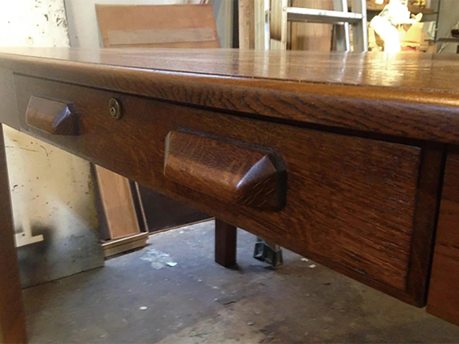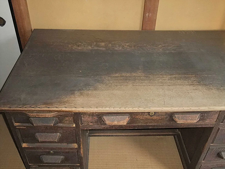 古いデスクをダイニングテーブルにリメイク リメイク前 経年劣化した国産デスクをダイニングテーブルにリメイク。天板と引き出しを利用し、劣化部分は丁寧に補修。 リメイク後 新たに脚構造体を組み合わせ、スッキリとしたデザインに。昔の趣を残しつつ、新たな家具へと生まれ変わりました。 参考価格 ¥250,000〜 古木材を棚板に利用しオープンシェルフにリメイク 洋服箪笥の二分割リメイク リメイク一覧