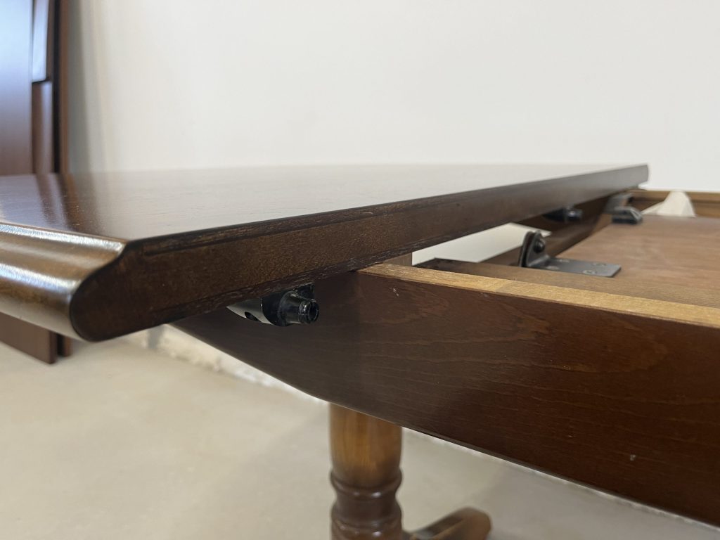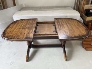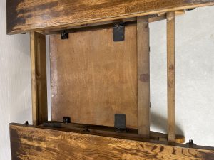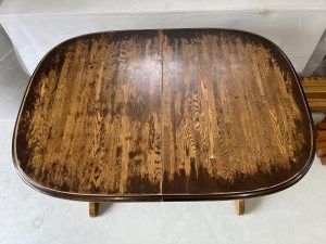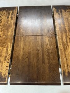 エクステンションの中板は使われない事が多いので、ほぼオリジナルの塗装が残っているケースがままあります。ただし、今回は脚部の色味に統一して着色塗装します。