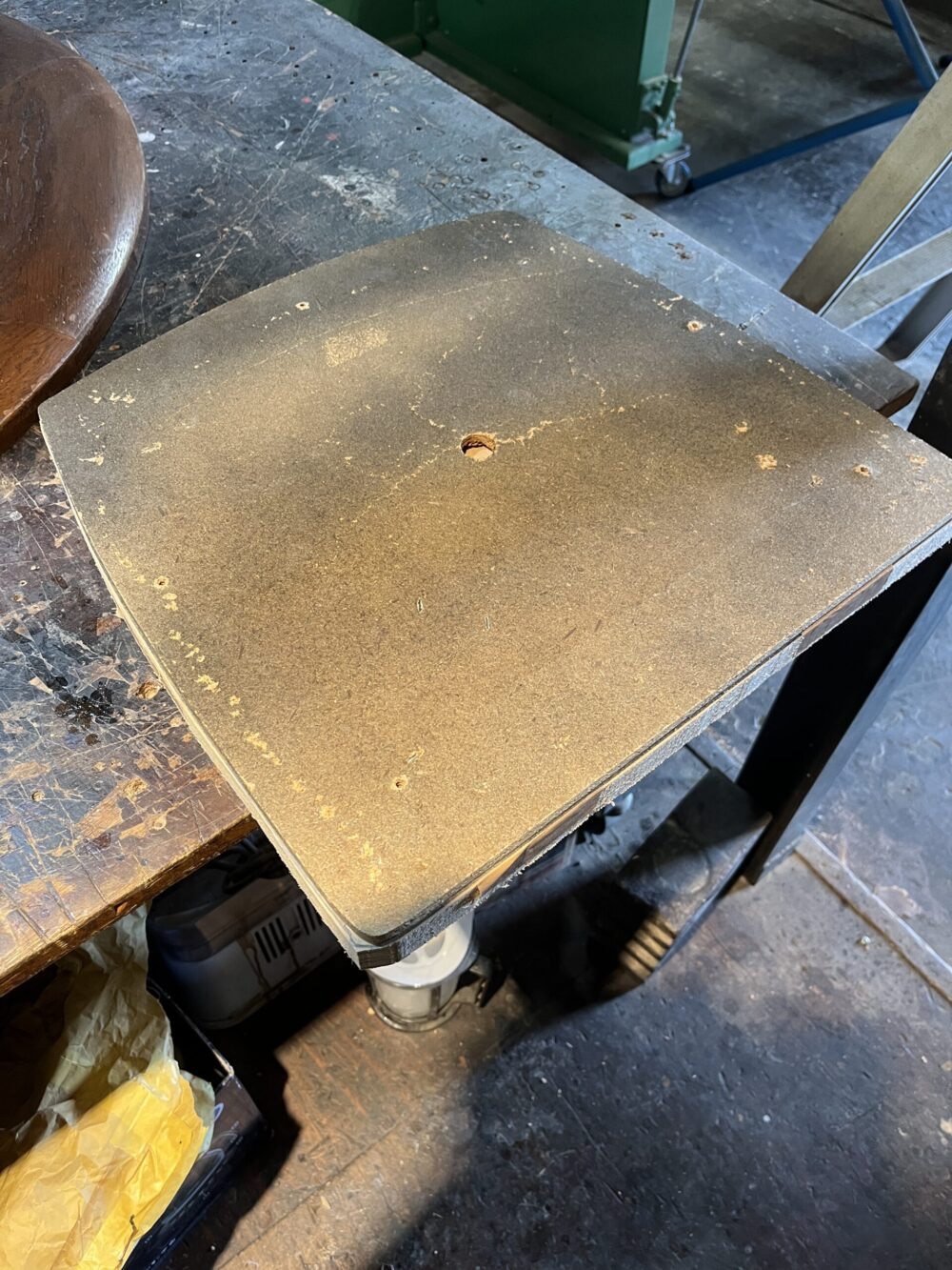 座板が一枚、ビスで下から止まっているのですが、今回は生地の張替えと加えて破損している座面を新たに作り直して交換も行います。